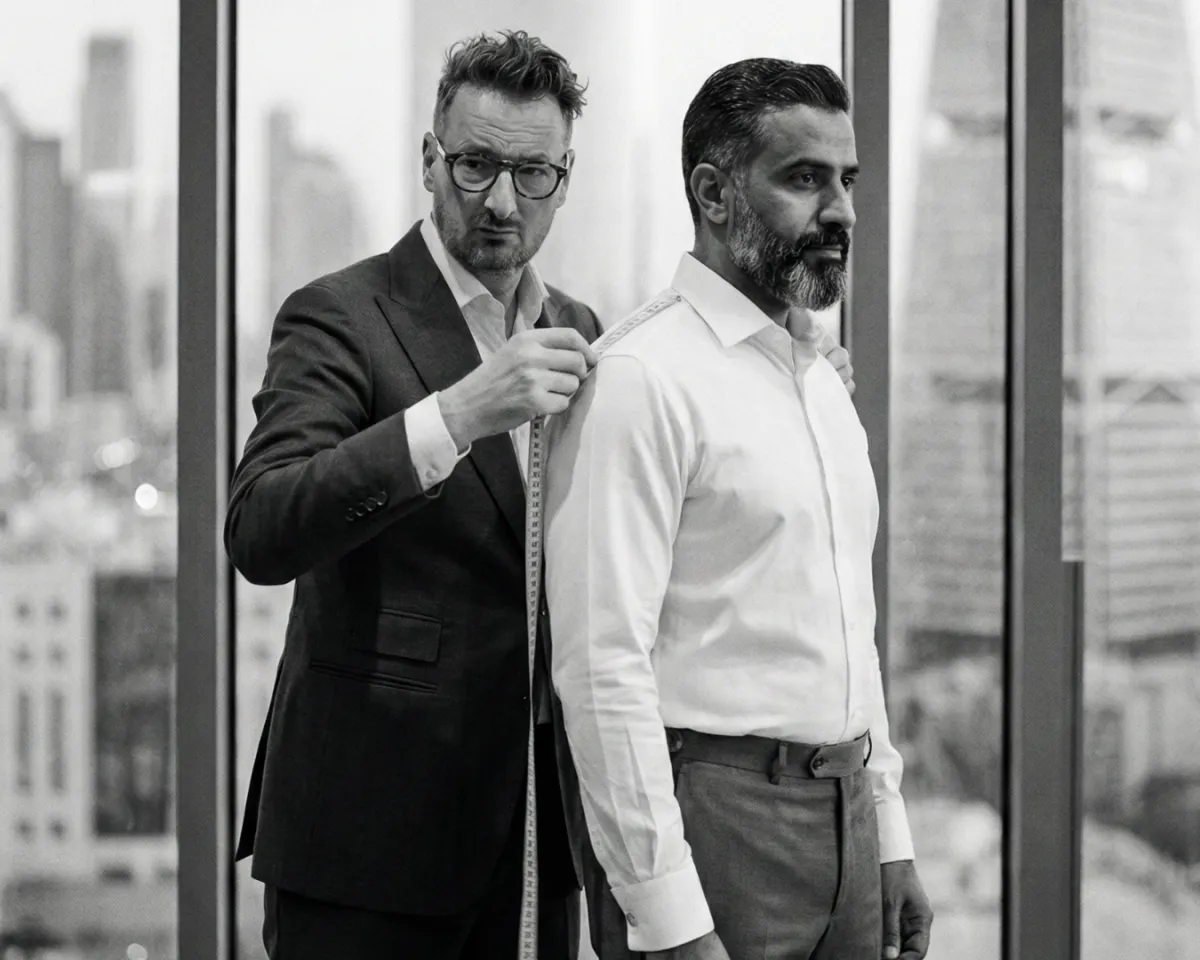 Our Riyadh studio provides private consultations for bespoke tailoring services. We're centrally located to serve clients across Riyadh, including business districts and residential areas. Yes, we offer mobile consultations for executives and VIP clients who prefer the convenience of measurements taken at their office or residence. Contact us to book your appointment and discuss the consultation option that best suits your schedule.